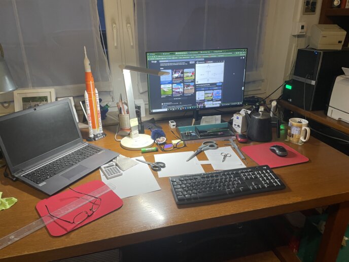 Auf diesem Tisch werden die 3D-Drucke aufbereitet und zusammengebaut. Außerdem werden hier die Teile für meine Modelleisenbahn hergestellt, bemalt, geklebt usw.
