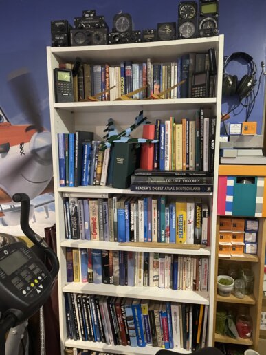 Hier zeige ich meine Luftfahrtliteratur und eine Sammlung alter Avionikgeräte.